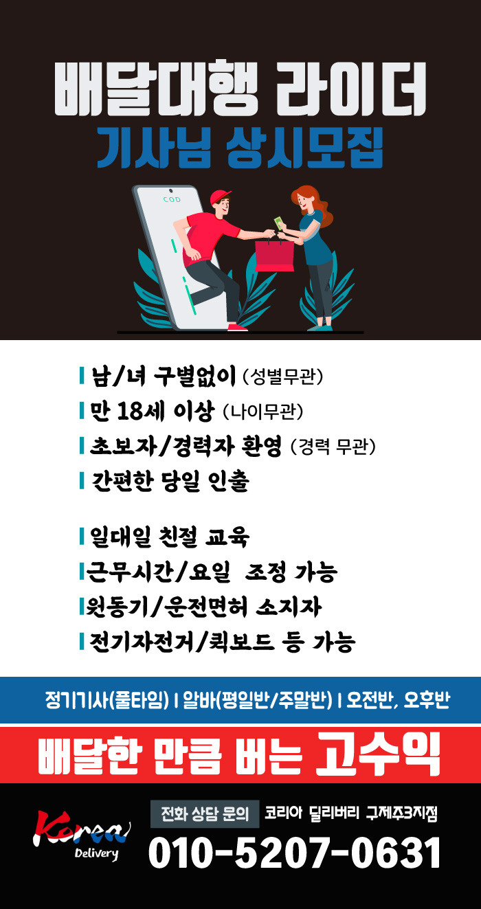 [구제주] 라이더 기사님 모집 [남녀구분없이] 페이지 정보 작성자 코OOOOO리 작성일24-01-16 21:20 조회5,053회 연락처 010-5207-0631 관련링크 본문 [구제주] 에서 함께 배달일 할 기사님 모집합니다.성별 상관없이 초보자도 가능하니 편하게 연락하고상담 받아 보세요 이전글 다음글 목록