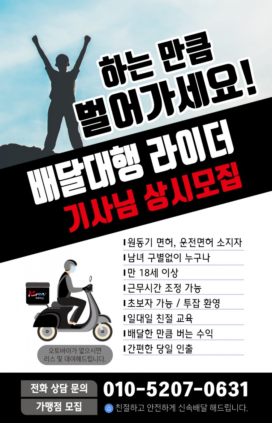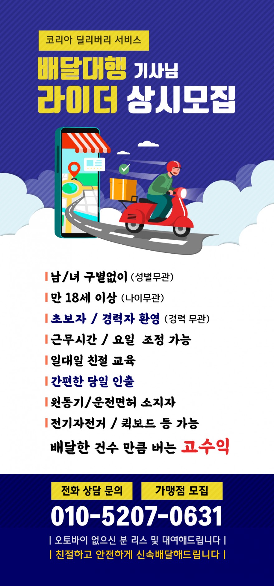 배달대행 기사님ㅣ라이더ㅣ함께 해요. 페이지 정보 작성자 코OOOOO리 작성일23-12-30 22:27 조회4,679회 연락처 010-5207-0631 관련링크 본문 구제주에서 함께 하실 기사님 모집합니다. 이전글 다음글 목록