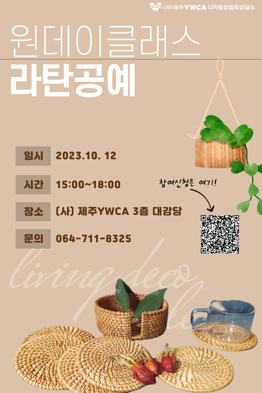 (사)제주YWCA 디지털성범죄상담소에서 치유회복프로그램 - 라탄공예 모집합니다.