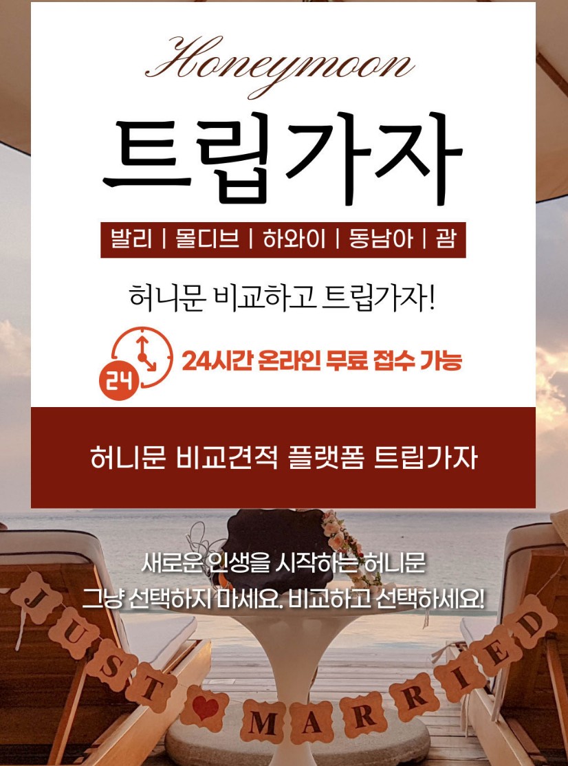 허니문 비교견적 플랫폼 트립가자-상담 지역 : 발리, 몰디브, 하와이, 동남아, 괌/ 24시간 온라인 무료 접수 가능