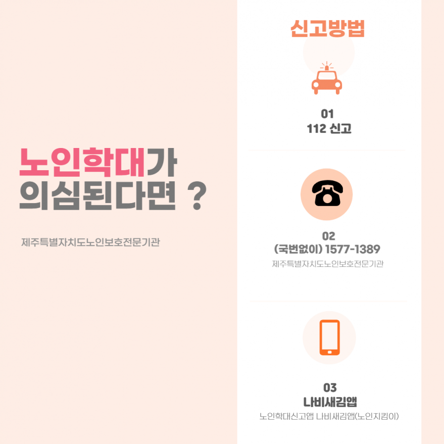 [제주특별자치도노인보호전문기관]노인학대가 의심된다면? 페이지 정보 작성자 제OO보 작성일23-04-28 14:14 조회4,745회 연락처 010---- 관련링크 본문 노인학대가 의심된다면? 이전글 다음글 목록