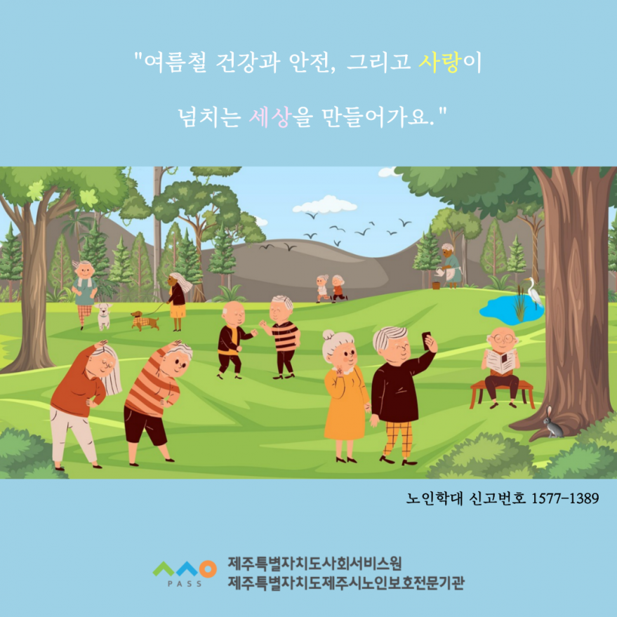 [제주특별자치도제주시노인보호전문기관] 7월 노인학대예방 포스터 페이지 정보 작성자 제OOOOOOOOOOOOOOOO관 작성일25-07-03 11:25 조회2,434회 연락처 010-4690-1389 관련링크 본문 안녕하세요~ 제주특별자치도제주시노인보호전문기관입니다~ 7월 노인학대예방 포스터 공유드립니다~ ☀️무더위보다 더 뜨거운 관심이 필요합니다여름철에도 어르신의 안전과 인권을 지키는 따뜻한 시선을 잊지 마세요!지금, 여러분의 관심이 어르신에게 큰 힘이 됩니다❤️ 이전글 다음글 목록