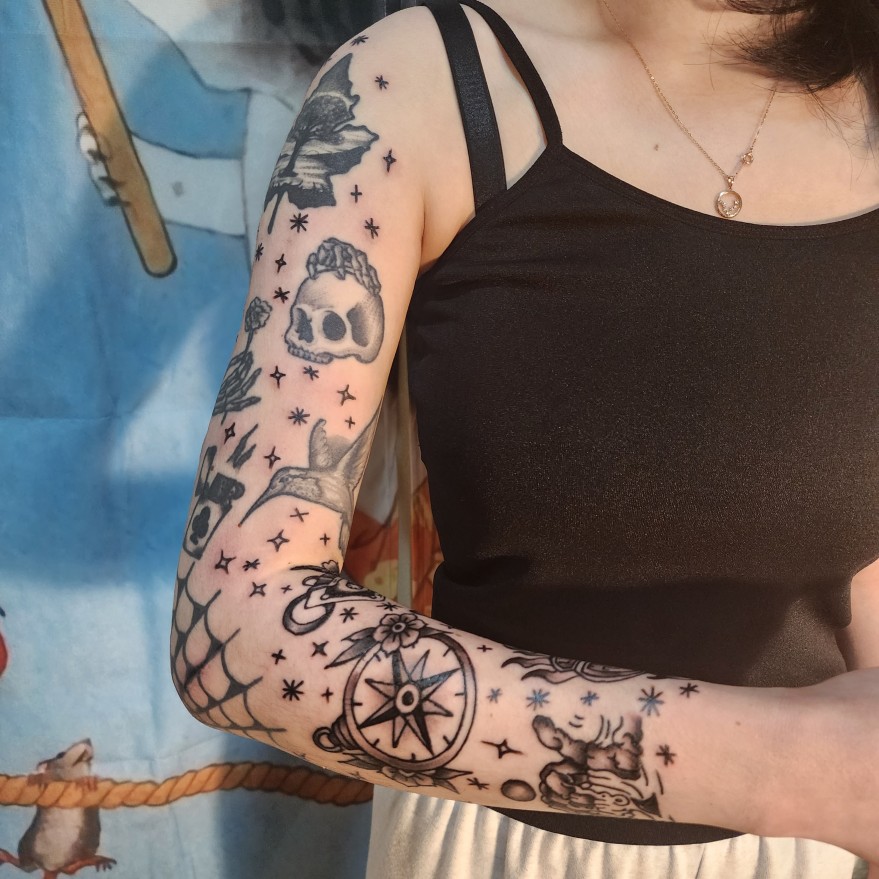 * 블랙올드스쿨 긴팔작업 (피드내 이레즈미풍 메인그림 ,블랙워크등 도안 포함도 가능함)
