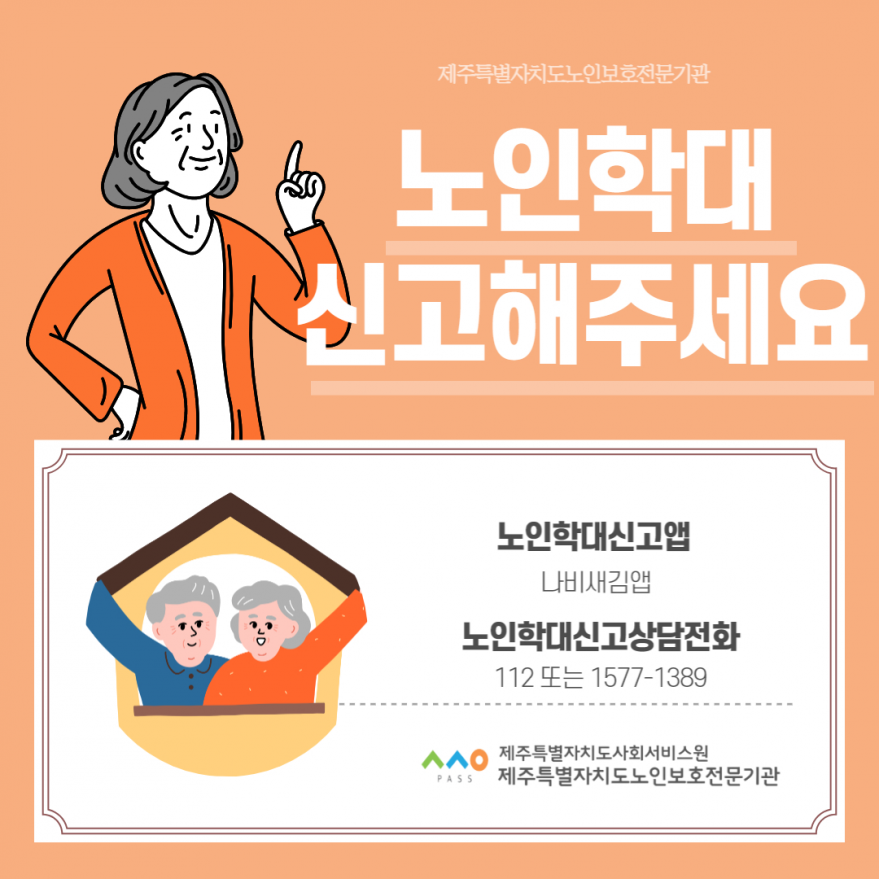[제주특별자치도노인보호전문기관]노인학대, 신고해주세요! 페이지 정보 작성자 제OO보 작성일23-03-17 09:16 조회4,979회 연락처 010---- 관련링크 본문 노인학대, 신고해주세요!노인학대 신고상담전화 1577-1389 - 이전글 다음글 목록