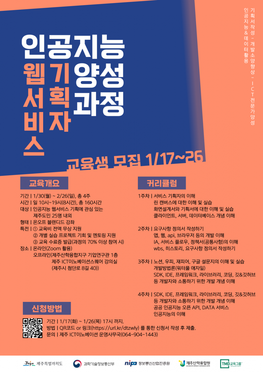 [제주ICT이노베이션스퀘어]'인공지능 웹 서비스 기획자 양성 과정' 안내