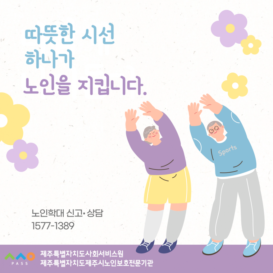 [제주특별자치도제주시노인보호전문기관] 6월 노인학대예방 포스터 페이지 정보 작성자 제OOOOOOOOOOOOOOOO관 작성일25-06-11 09:13 조회2,771회 연락처 010-4690-1389 관련링크 본문 안녕하세요~ 제주시노인보호전문기관에서 6월 노인학대예방포스터 공유드립니다~ 우리 곁의 어르신들이 따뜻한 말 한마디에 웃을 수 있도록 존중과 배려의 마음을 전해주세요 이전글 다음글 목록