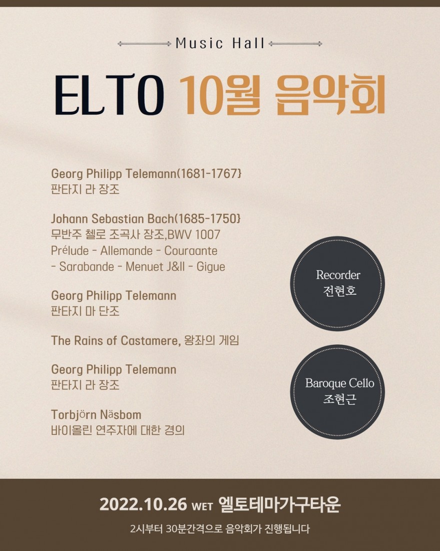 엘토테마가구타운에서 10월음악회를 진행합니다~!