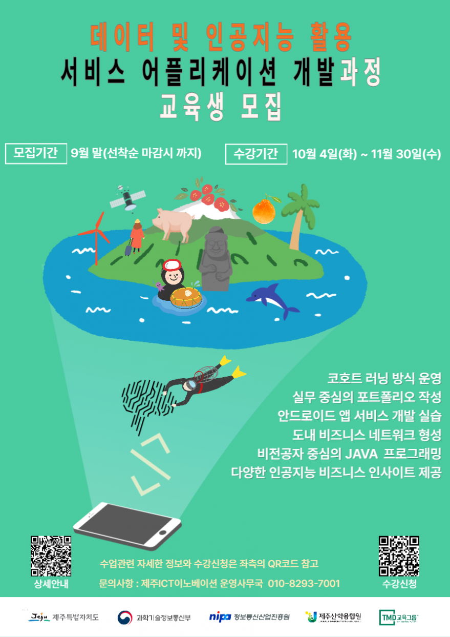 데이터 및 인공지능 활용 서비스 어플리케이션 개발 과정 수강생 모집하고 있습니다.