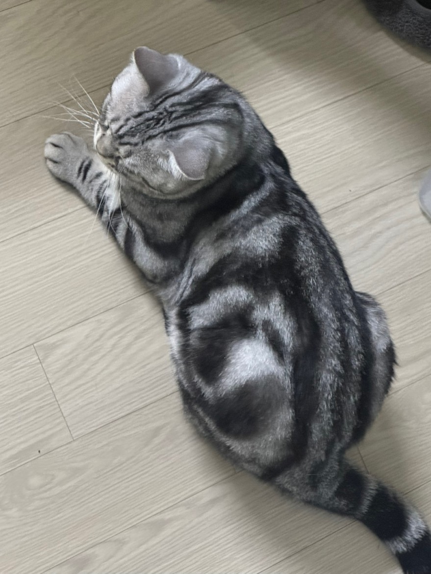 안녕하세요 작년 8월에 제 아들이 태어나서 같이 성장해온 12개월 된 아메리칸 숏 헤어 남아입니다(이름은 빵빵이)