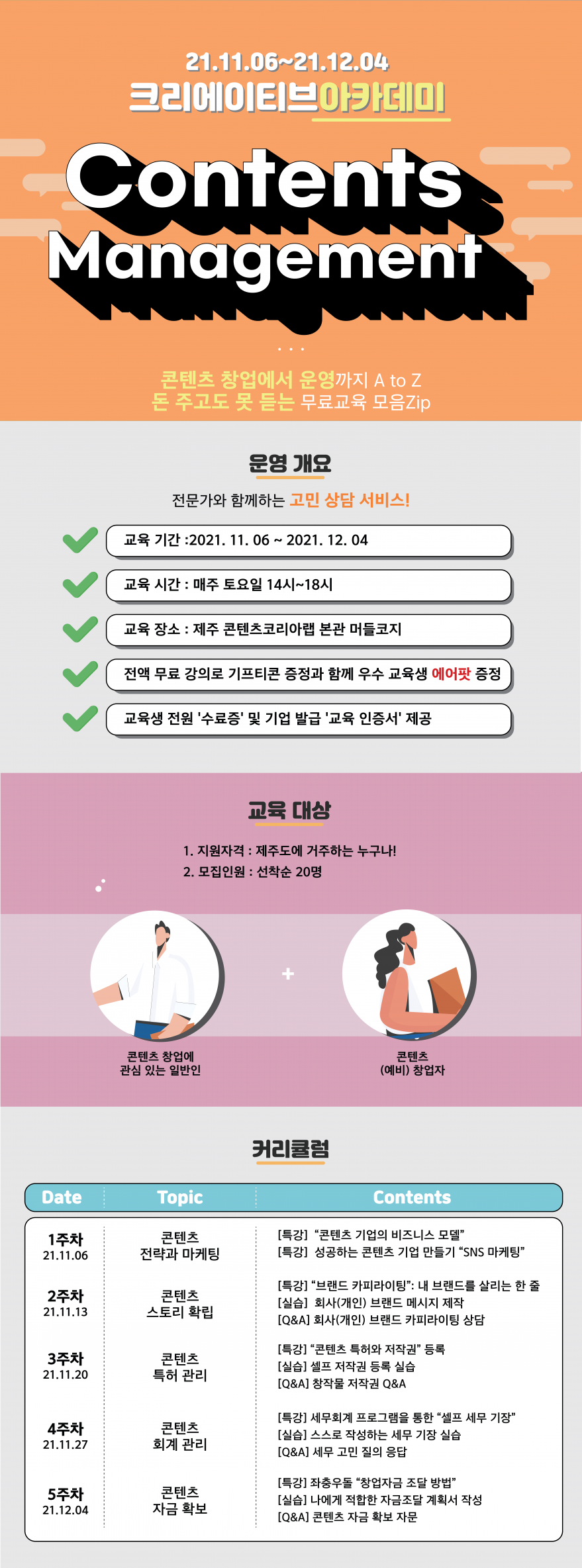(무료교육)제주콘텐츠코리아랩 크리에이티브 아카데미